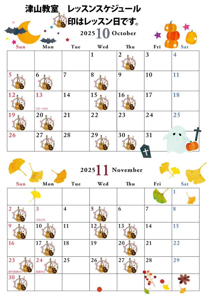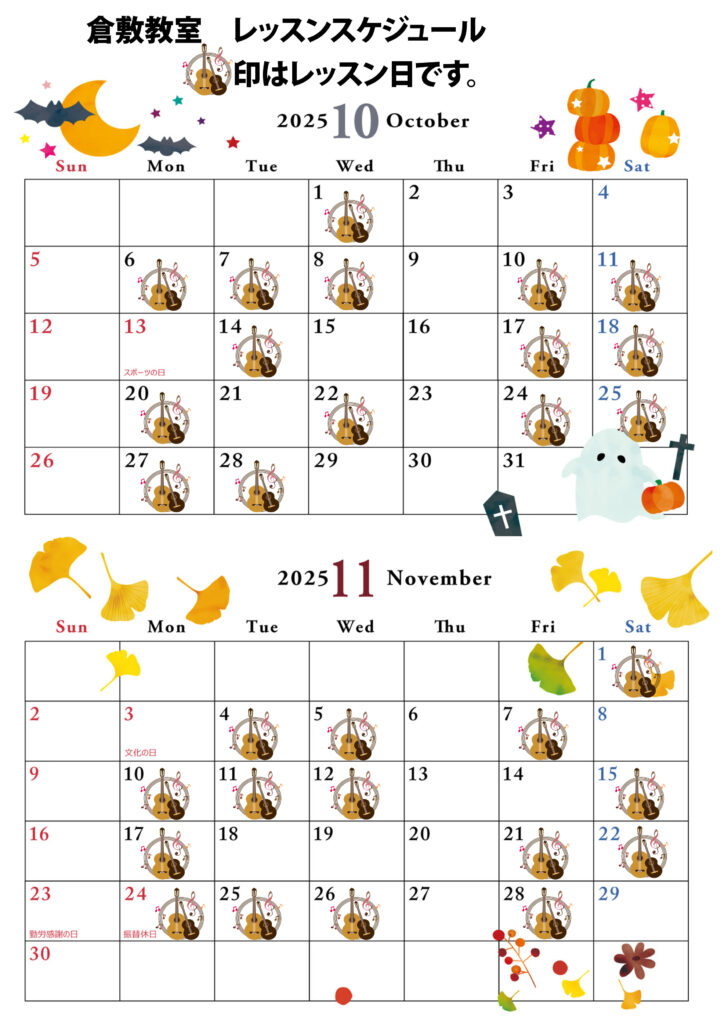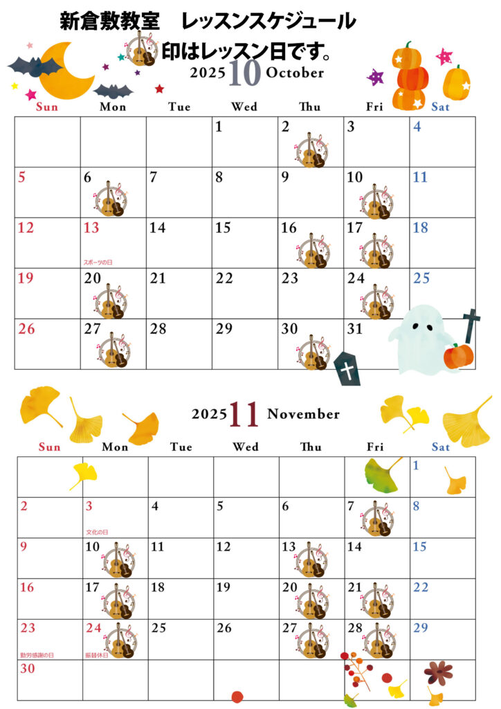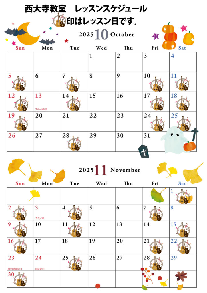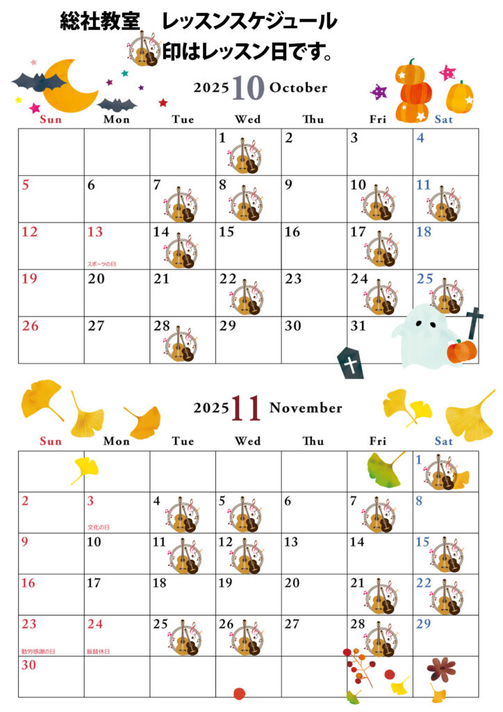 レッスン日やイベント日がチェックできます。